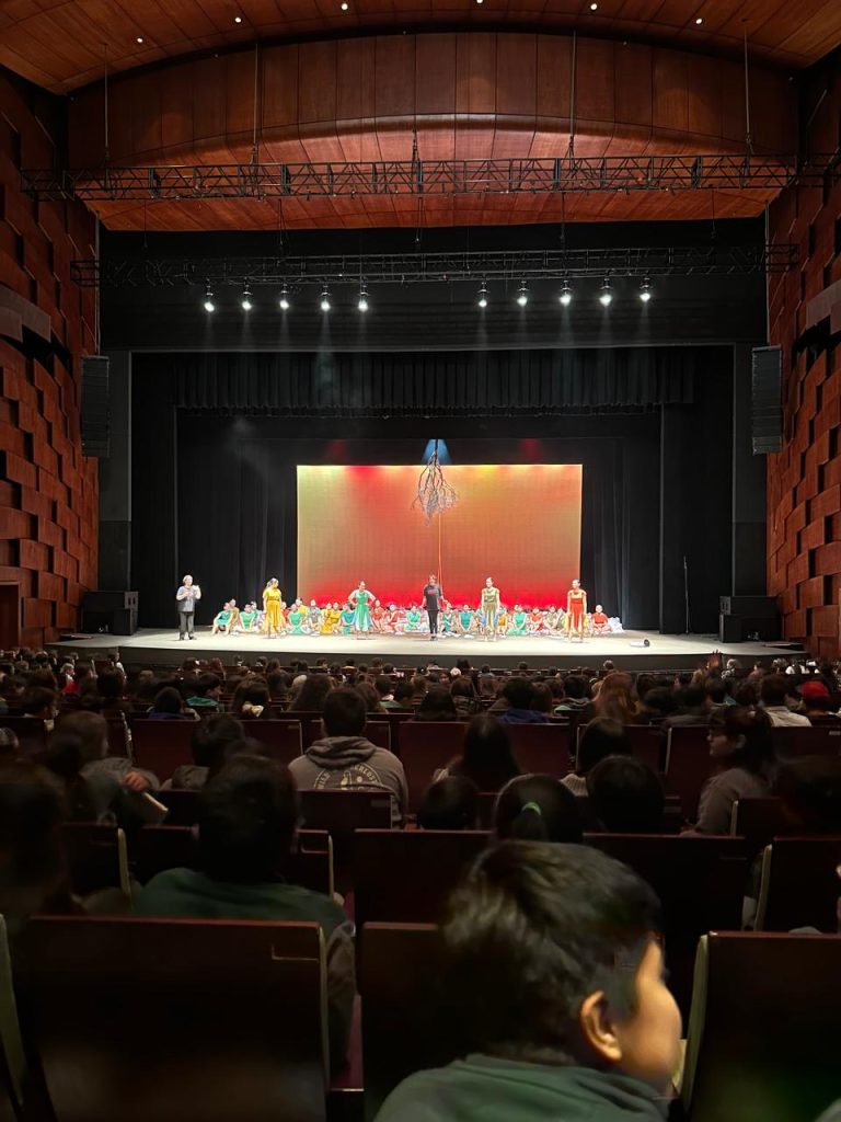 La delegación, compuesta por alumnos y alumnas de 5°, 6° y 7° año básico, se trasladó hasta el emblemático Teatro del Lago para participar en una nueva jornada del programa Eduvida Danza. En esta ocasión, los jóvenes tuvieron el privilegio de presenciar la obra «Brotar», una pieza artística que explora la conexión con la naturaleza y el desarrollo humano a través del movimiento.